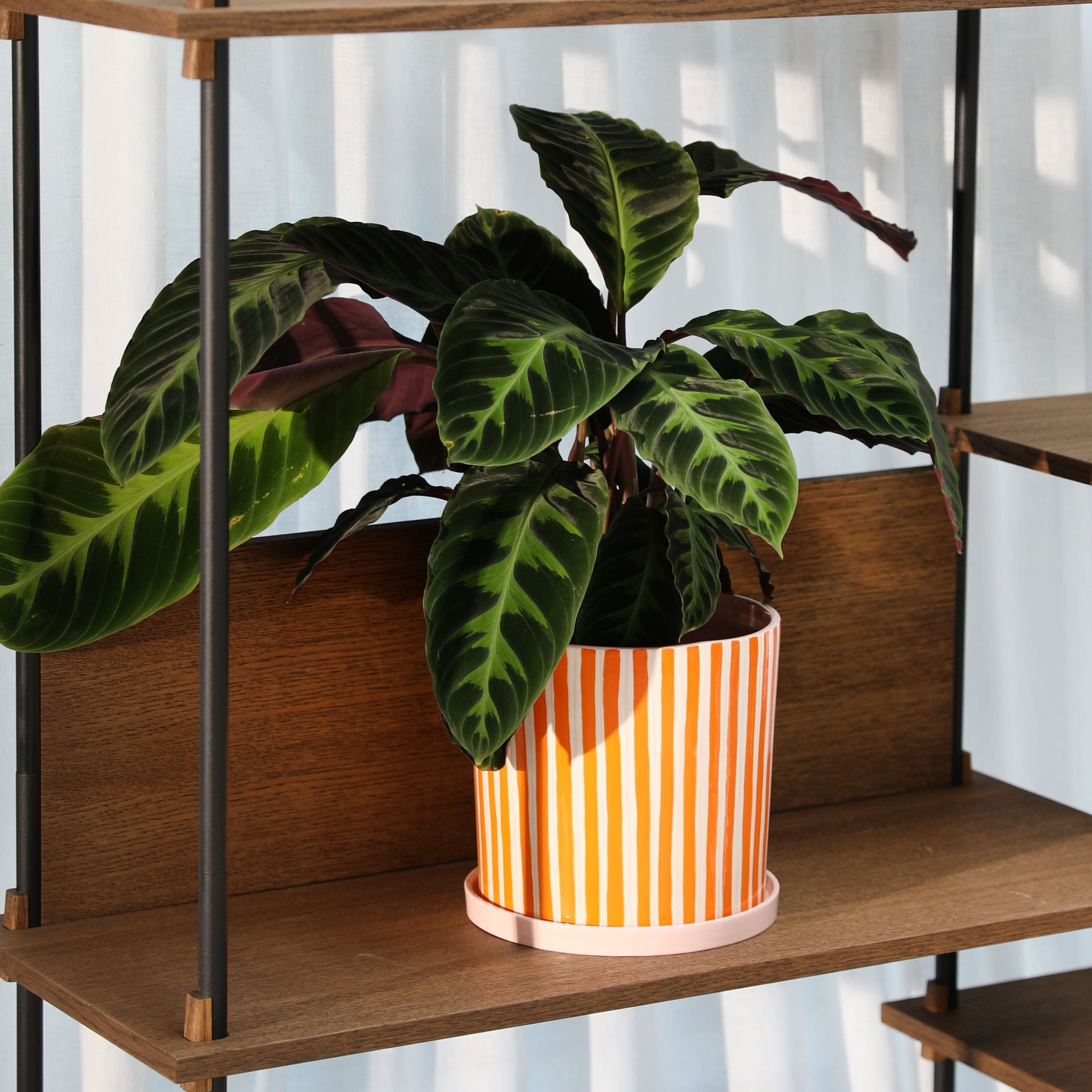 This planter ray is part of the well-known ray vase series. It has a hand-painted striped pattern and an irregular shape that gives it a unique look. Pair it with the ray vase for a stylish set