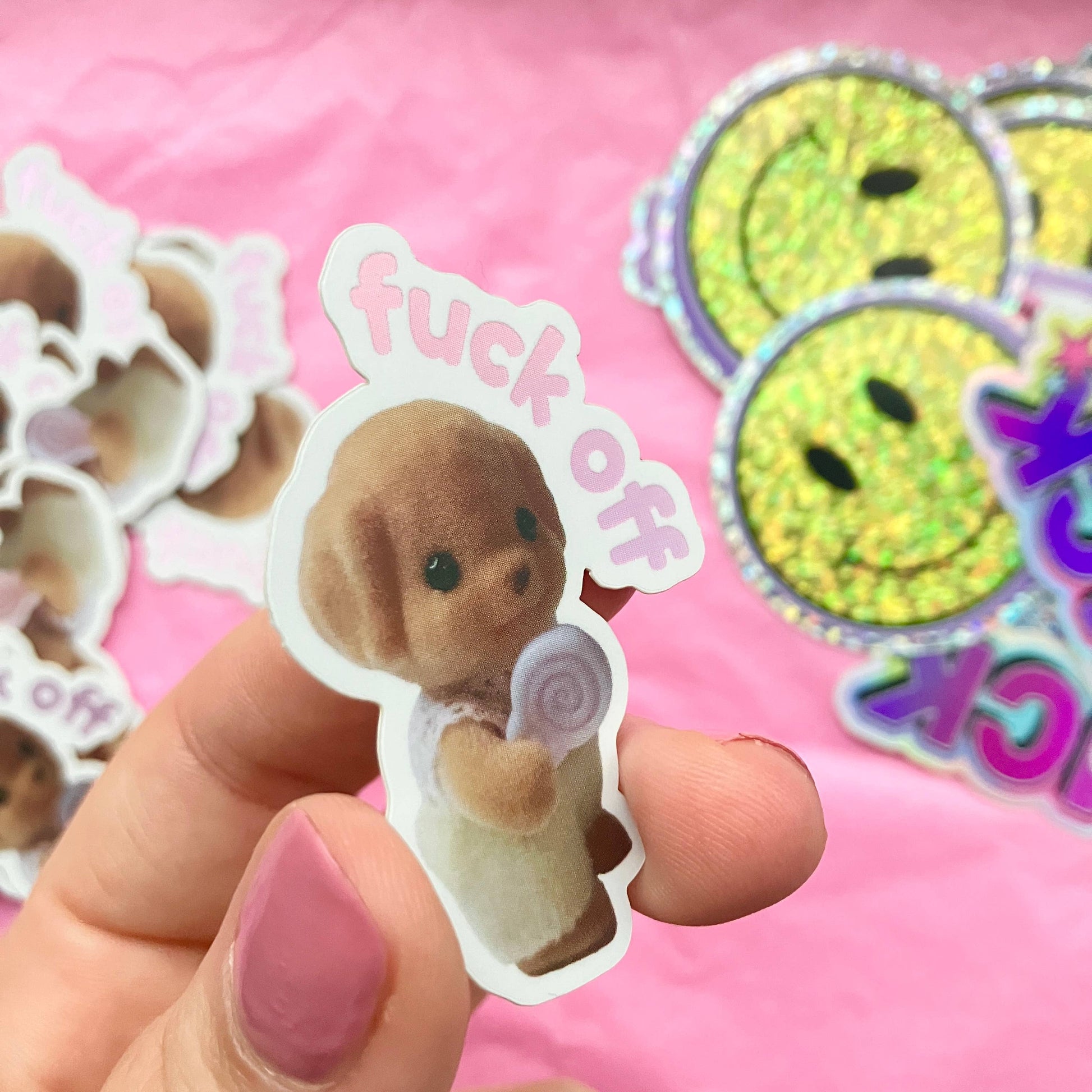 Funny Swear Sylvanian Families Inspired Critter Sticker | Y2K, Pink, Cute Sticker | Matte Holographic