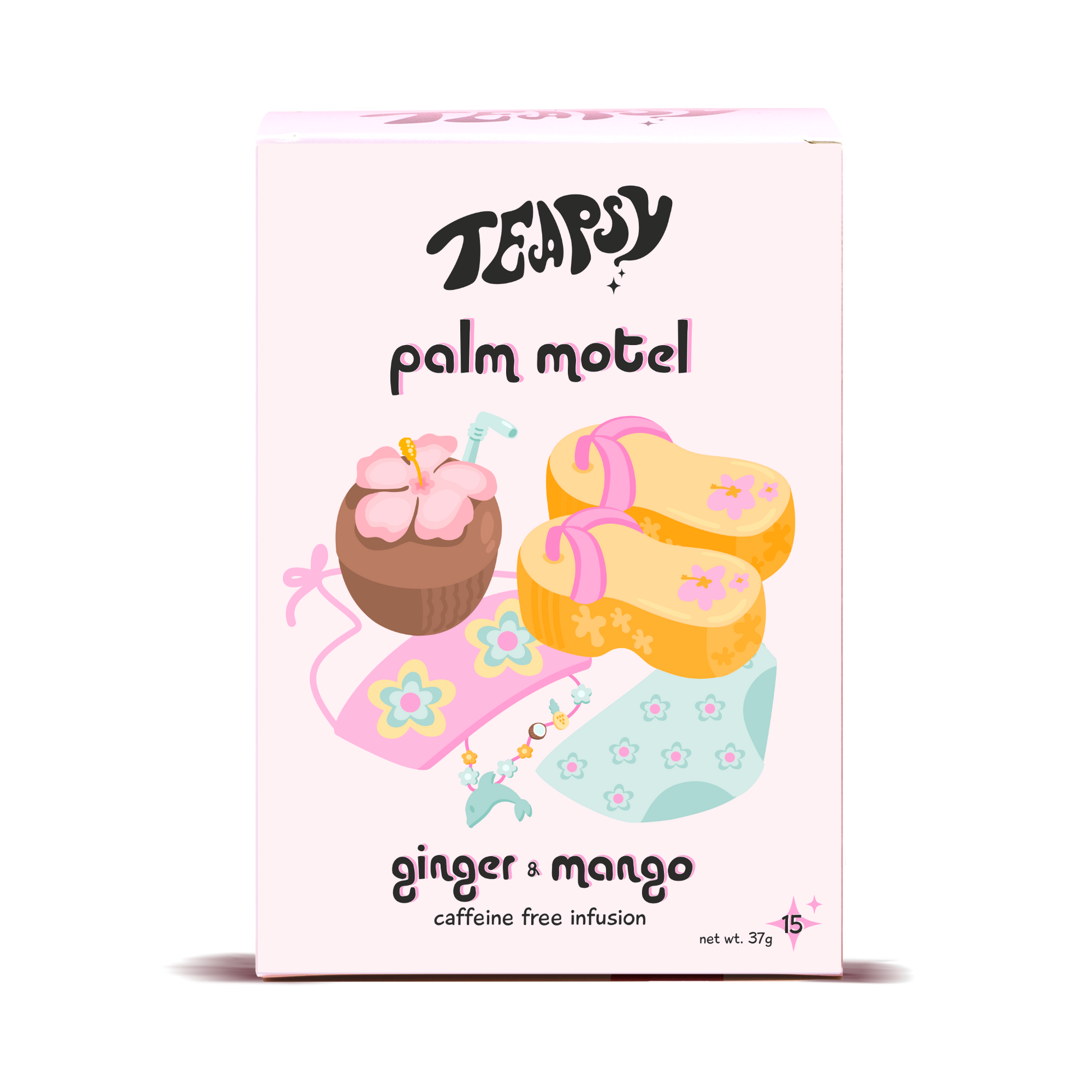 Palm Motel is a tropical twist on the classic lemon & ginger combo. It's perfectly balanced, leaving space for both fruity sweetness and gingery kick. It's for all the girlies in their mermaid era, sipping on a fruity tea all day. Caffeine Free