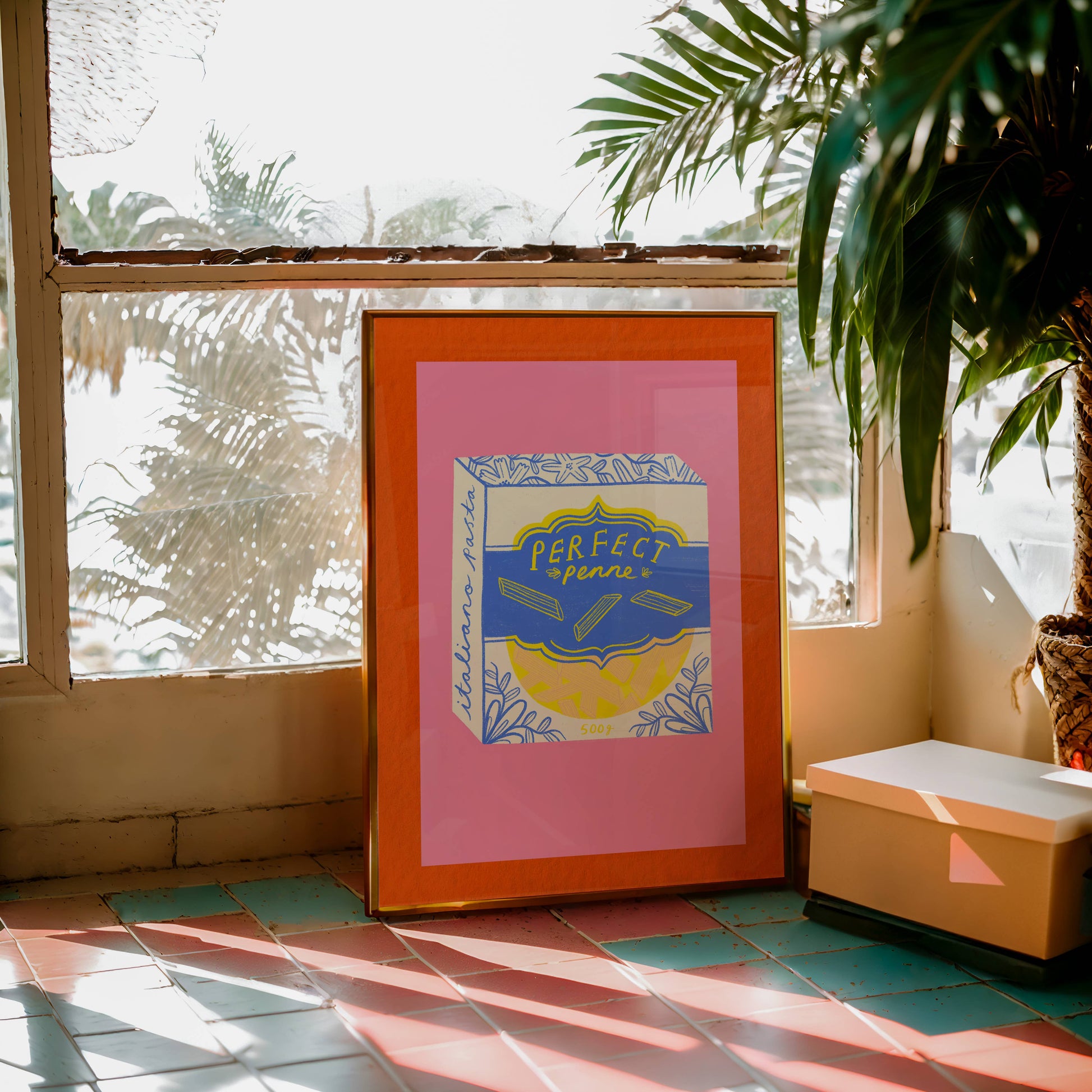 Add some spice to your kitchen or dining area with the perfect penne pasta print. Featuring a retro-inspired design, this print is perfect for pasta lovers, chefs, foodies and maximalists alike. Brighten up your cooking space with a splash of colour and foodie flair