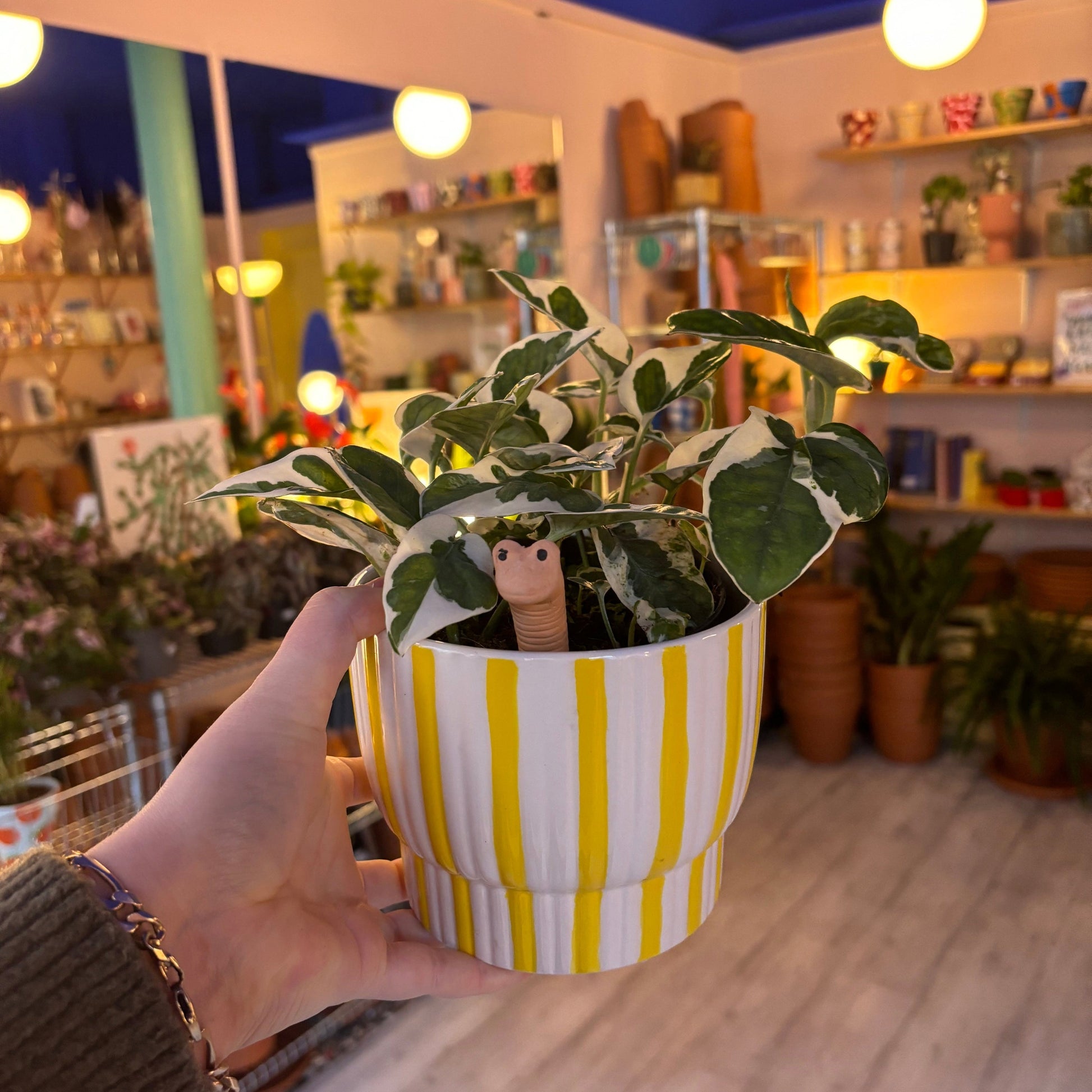 This small version of our bestselling Willy the Terracotta worm is on a mission to ensure that plants and flowers the world over remain well-watered. His friendly face pokes out of the soil next to plants and vegetables and when well-watered he turns a darker shade.